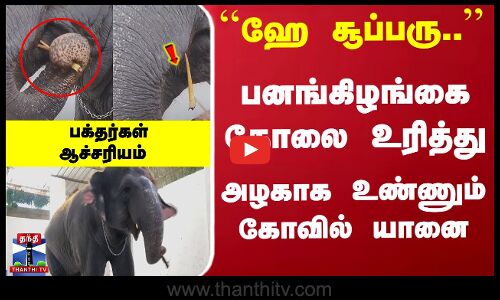 திருச்செந்தூர் கோவில் யானை “தெய்வானை, மனிதர்கள் போல பனை கிழங்கை துதிக்கையால் தோலை உரித்து சுவைத்து உண்ணும் காட்சி வியப்படைய செய்துள்ளது.