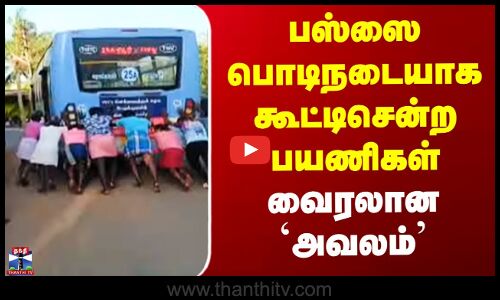 தென்காசியில், பழுதான ஒரு அரசு பேருந்தை பயணிகள் எவ்வளோ தள்ளிவிட்டும், அது ஸ்டார்ட் ஆகாத சம்பவம் குறித்த வீடியோ வெளியாகி உள்ளது. வீரகேரளம்புதூர் பகுதியில் இருந்து தென்காசிக்கு கல்லூரணி என்ற கிராமம் வழியாக ஒரு அரசு பேருந்து சென்று கொண்டு இருந்தது. அப்போது திடீரென பழுதான அந்த பேருந்தை, பயணிகள் நீண்ட நேரமாக வடிவேல் காமெடி பட பாணியில் தள்ளிவிட்டனர். ஒரு கட்டத்தில் பயணிகள் ரொம்பவும் Upset ஆகினர். இதுகுறித்த வீடியோ சமூக வலைத்தளங்களில் பரவி வருகிறது.