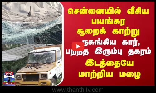 சென்னையில் வீசிய பயங்கர சூறைக் காற்று.. நசுங்கிய கார், பறந்த இரும்பு தகரம் - இடத்தையே மாற்றிய மழை