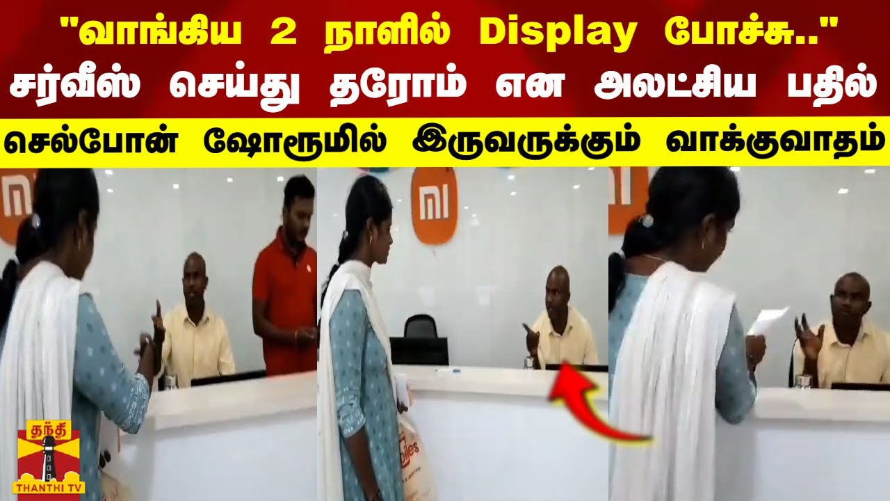 "வாங்கிய 2 நாளில் Display போச்சு.."சர்வீஸ் செய்து தரோம் என அலட்சிய பதில் செல்போன் ஷோரூமில் இருவருக்கும் வாக்குவாதம்