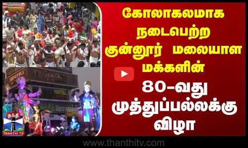 நீலகிரி மாவட்டம் குன்னூரில் உள்ள மாரியம்மன் கோவில் திருவிழாவின் முக்கிய நிகழ்வான மலையாள மக்களின் முத்துப்பல்லக்கு விழா 80வது ஆண்டாக கோலாகலமாக நடைபெற்றது. ஊர்வலத்தில் கும்ப கலசங்கள், கதைகளை வெளிப்படுத்தும் கடவுள்களின் உருவங்கள் இடம் பெற்றன. பக்தர்கள் பாரம்பரிய உடைகளில் நடத்திய கலாசார நிகழ்ச்சிகளை திரளானோர் கண்டு களித்தனர்.