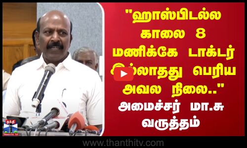 "ஹாஸ்பிடல்ல காலை 8 மணிக்கே டாக்டர் இல்லாதது பெரிய அவல நிலை.." அமைச்சர் மா.சு வருத்தம்