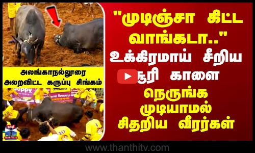 "முடிஞ்சா கிட்ட வாங்கடா.." உக்கிரமாய் சீறிய சூரி காளை.. நெருங்க முடியாமல் சிதறிய வீரர்கள் - அலங்காநல்லூரை அலறவிட்ட கருப்பு சிங்கம்