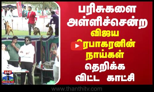 பரிசுகளை அள்ளிச் சென்ற விஜய பிரபாகரனின் நாய்கள் தெறிக்க விட்ட காட்சி