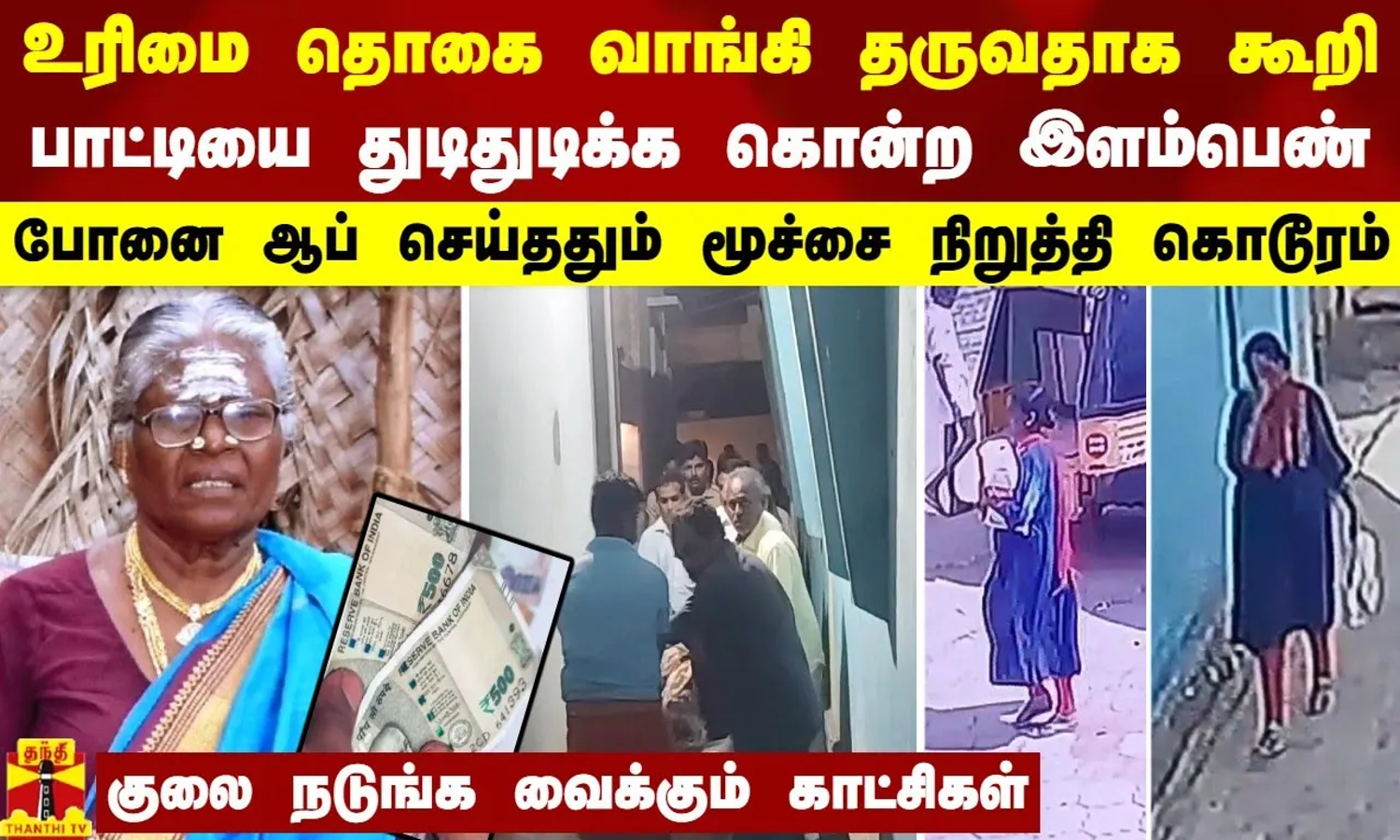 உரிமை தொகை வாங்கி தருவதாக கூறி பாட்டியை துடிதுடிக்க கொன்ற இளம்பெண் குலை நடுங்க வைக்கும் காட்சிகள்