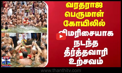 காஞ்சிபுரம் வரதராஜ பெருமாள் கோயிலில் தீர்த்தவாரி உற்சவம் வெகு விமரிசையாக நடைபெற்றது. இதில் திரளான பக்தர்கள் கலந்து கொண்டு அனந்த சரஸ் திருக்குளத்தில் நீராடி சென்றனர். வைகாசி பிரம்மோற்சவத்தின் ஒன்பதாம் நாளில் நடைபெற்ற தீர்த்தவாரி உற்சவத்தை ஒட்டி, ஸ்ரீதேவி, பூதேவியுடன் நூற்றுக்கால் மண்டபத்தில் எழுந்தருளிய வரதராஜ பெருமாளுக்கு சிறப்பு பூஜைகள் செய்யப்பட்டன.