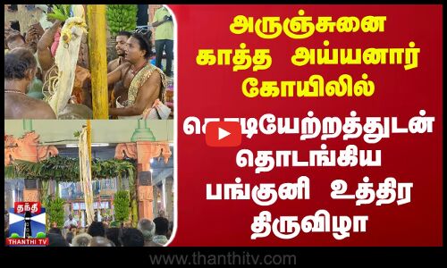 திருச்செந்தூர் அருகே மேலப்புதுக்குடியில் அமைந்துள்ள அருஞ்சுனை காத்த அய்யனார் கோவிலில், பங்குனி உத்திர திருவிழா கொடியேற்றத்துடன் தொடங்கியது. தரப்பைப்புல் கொண்டு அலங்கரிக்கப்பட்ட மரத்திற்கு வெண்பட்டு அணிவித்து சிறப்பு பூஜை செய்து, விழாக் கொடியேற்றப்பட்டது.