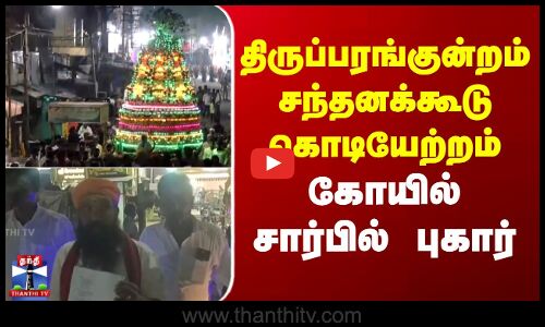 திருப்பரங்குன்றம் மலை மீது உரிய அனுமதி இன்றி சந்தனக்கூடு விழா கொடியேற்றம் செய்த தர்கா நிர்வாகத்தின் மீது நடவடிக்கை எடுக்க வலியுறுத்தி கோவில் நிர்வாகத்தின் சார்பில் காவல் நிலையத்தில் புகார் அளிக்கப்பட்டுள்ளது. தலவிருட்சமான கல்லத்தி மரத்தில் கொடியேற்றியது தொடர்பாக இந்து சமய அறநிலையத்துறைக்கு நீதிபதி சுவாமிநாதன், அடுத்தடுத்து கேள்வி எழுப்பிய நிலையில், கோவில் நிர்வாகம் சார்பில் சந்தனகூடு கொடியை அகற்ற வலியுறுத்தி காவல்நிலையத்தில் புகார் அளிக்கப்பட்டது.