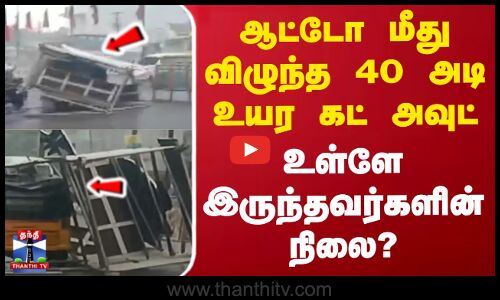 ஆட்டோ மீது விழுந்த 40 அடி உயர கட் அவுட் - உள்ளே இருந்தவர்களின் நிலை?