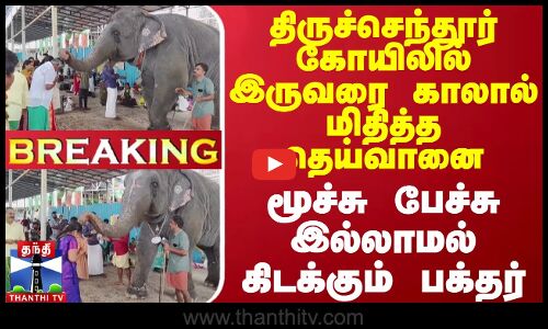 #BREAKING || திருச்செந்தூர் கோயிலில் இருவரை காலால் மிதித்த தெய்வானை - மூச்சு பேச்சு இல்லாமல் கிடக்கும் பக்தர்
