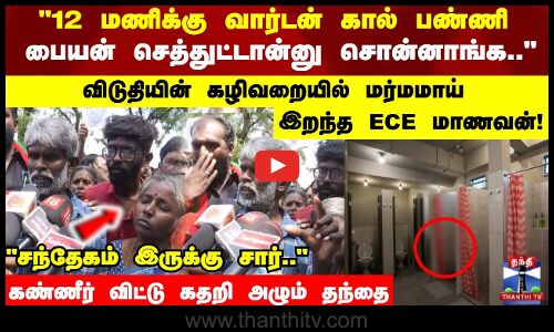 "12 மணிக்கு வார்டன் கால் பண்ணி பையன் செத்துட்டான் சொன்னாங்க.." விடுதியின் கழிவறையில் மர்மமாய் இறந்த ECE மாணவன்