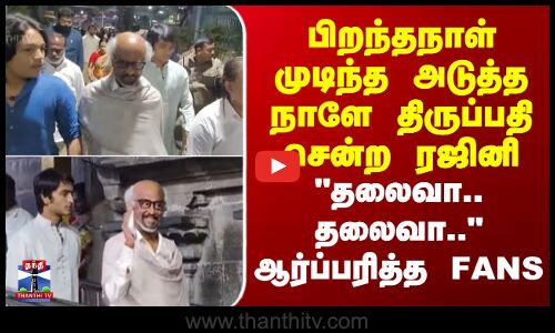 பிறந்த நாள் முடிந்த அடுத்த நாளே திருப்பதி சென்ற ரஜினி.. "தலைவா.. தலைவா.." ஆர்ப்பரித்த ரசிகர்கள், திருப்பதி ஏழுமலையான் கோவிலில் நடிகர் ரஜினிகாந்த் குடும்பத்தினருடன் சாமி தரிசனம் செய்து வருகிறார்.... அந்த காட்சிகளை பார்க்கலாம்....