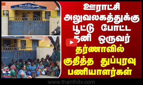 Tirupattur | ஊராட்சி அலுவலகத்துக்கு பூட்டு போட்ட தனி ஒருவர்- தர்ணாவில் குதித்த துப்புரவு பணியாளர்கள்