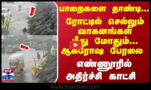 பாறைகளை தாண்டி... ரோட்டில் செல்லும் வாகனங்கள் மீது மோதும்... ஆக்ரோஷ பேரலை - எண்ணூரில் அதிர்ச்சி