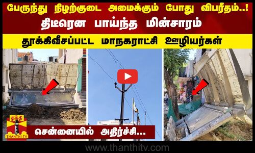 பேருந்து நிழற்குடை அமைக்கும் போது விபரீதம்..! திடீரென பாய்ந்த மின்சாரம்..தூக்கிவீசப்பட்ட ஊழியர்கள்