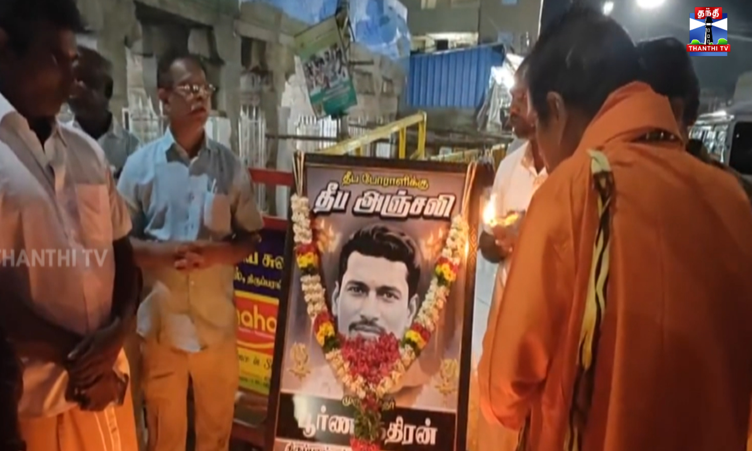 இதனிடையே, திருப்பரங்குன்றம் மலை மீது உள்ள கல் தூணில் தீபம் ஏற்றக்கோரி தற்கொலை செய்து கொண்ட பூர்ண சந்திரன் உடலுக்கு அனுமதியின்றி அஞ்சலி செலுத்தியதாக இந்து அமைப்பினர் 10 பேரை காவல்துறையினர் கைது செய்துள்ளனர்