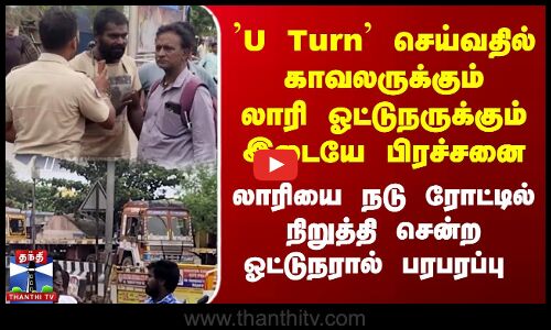 Chennai|காவலருக்கும் லாரி ஓட்டுநருக்கும் இடையே பிரச்சனை..லாரியை நடு ரோட்டில் நிறுத்தி சென்ற ஓட்டுநர்