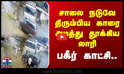 சாலை நடுவே திரும்பிய காரை அடித்து தூக்கிய லாரி - பகீர் காட்சி