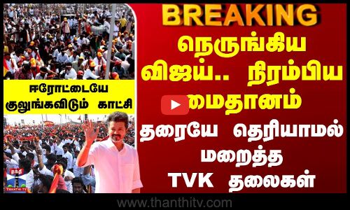 Tvk ஈரோடு விஜய் பிரச்சாரம் | நெருங்கிய விஜய்.. நிரம்பிய மைதானம் - தரையே தெரியாமல் மறைந்த TVK தலைவர்கள்