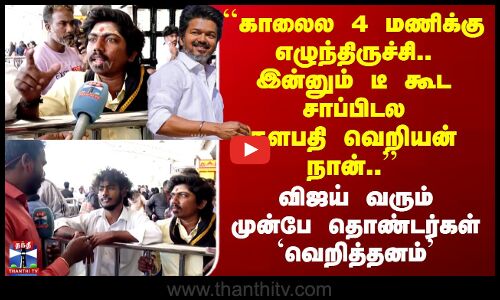 TVK Erode Vijay Campaign | ``இன்னும் டீ கூட சாப்பிடல’’ - விஜய் வரும் முன்பே தொண்டர்கள் வெறித்தனம்