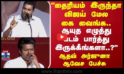 TVK Vijay | Aadhav Arjuna Speech | "தைரியம் இருந்தா விஜய் மேல கை வைங்க.." ஆதவ் அர்ஜுனா ஆவேச பேச்சு