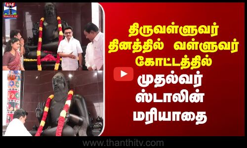 சென்னை, வள்ளுவர் கோட்டத்தில் திருவள்ளுவர் திருநாளை முன்னிட்டு திருவள்ளுவரின் திருவுருவச் சிலைக்கு தமிழக முதலமைச்சர் ஸ்டாலின் மாலை அணிவித்து, மலர் தூவி மரியாதை செலுத்திவருகிறார்...