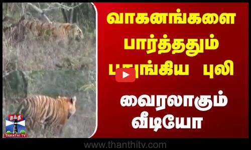 வாகனங்களை பார்த்ததும் பதுங்கிய புலி வைரலாகும் வீடியோ