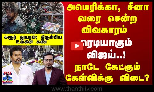 Vijay Rally Stampede | US,சீனா வரை சென்ற விவகாரம்.. ரெடியாகும் விஜய்- நாடே கேட்கும் கேள்விக்கு விடை?