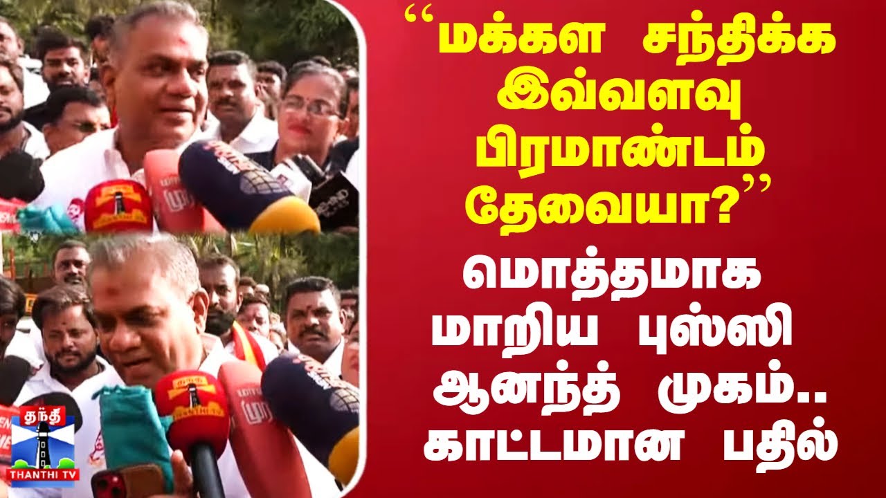 ``மக்கள சந்திக்க இவ்வளவு பிரமாண்டம் தேவையா?’’ - மொத்தமாக மாறிய புஸ்ஸி ஆனந்த் முகம்.. காட்டமான பதில்