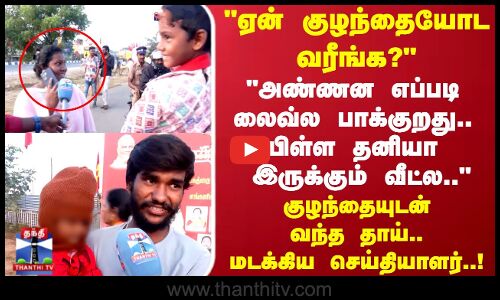 "ஏன் மா.. குழந்தையோட வரீங்க..?" "அண்ணன எப்படி லைவ்ல பாக்குறது.. பிள்ள தனியா இருக்கும் வீட்ல.." குழந்தையுடன் வந்த தாய்.. மடக்கிய செய்தியாளர்!