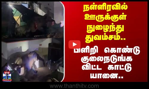 Wild Elephant | நள்ளிரவில் ஊருக்குள் நுழைந்து துவம்சம்.. பிளிறி கொண்டு குலைநடுங்க விட்ட காட்டு யானை