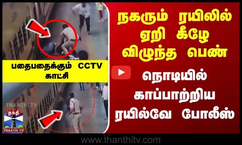 நகரும் ரயிலில் ஏறி கீழே விழுந்த பெண் | நொடியில் காப்பாற்றிய ரயில்வே போலீஸ்