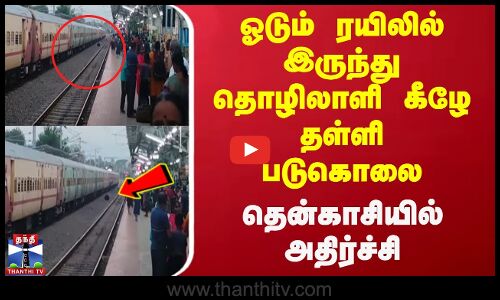 தென்காசி மாவட்டம் செங்கோட்டை அருகே ஓடும் ரயிலில் இருந்து தொழிலாளி ஒருவர் கீழே தள்ளி விட்டு கொலை செய்யப்பட்ட சம்பவம் பரபரப்பை ஏற்படுத்தியுள்ளது.