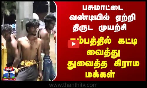 Cowtheft | பசுமாட்டை வண்டியில் ஏற்றி திருட முயற்சி - கம்பத்தில் கட்டி வைத்து துவைத்த கிராம மக்கள்