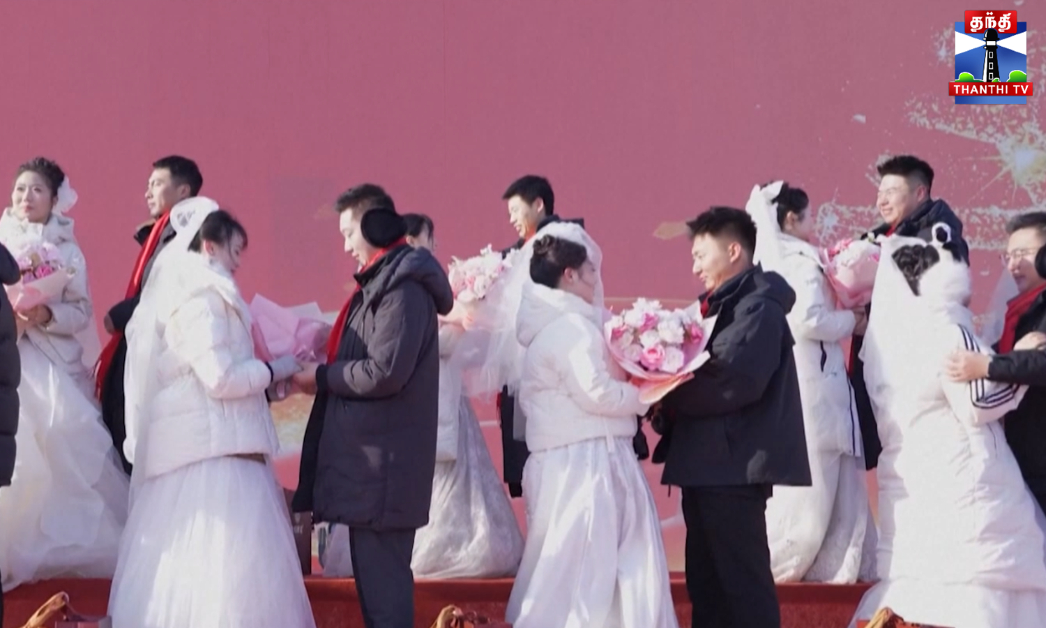ஹார்பின் ஐஸ் அண்ட் ஸ்னோ வேர்ல்ட் பூங்கால நடந்த திருமண நிகழ்வுல மொத்தம் 42 ஜோடிகள் தங்களோட இல்லற வாழ்வ தொடங்குனாங்க..