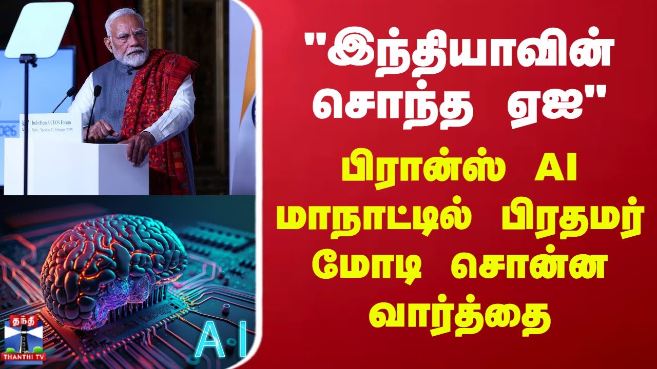இரண்டு நாள் அரசு முறை பயணமாக பிரான்ஸ் சென்றுள்ள பிரதமர் மோடி, அந்நாட்டு அதிபர் இமானுவேல் மேக்ரானுடன் இணைந்து செயற்கை நுண்ணறிவு தொழில்நுட்பம் தொடர்பான உச்சி மாநாட்டிற்கு தலைமை தாங்கினார். அந்த மாநாட்டில் பேசிய பிரதமர் மோடி, AI தொழில்நுட்பத்தால் வேலைவாய்ப்பின் தன்மை மாறி, புதுவித வேலைவாய்ப்புகள் உருவாக்கப்படுகின்றன என் கூறினார். இந்தியா தனது பன்முகத்தன்மையை கருத்தில் கொண்டு தனது சொந்த மொழி AI மாதிரியை உருவாக்கி வருகிறது என்றும் பிரதமர் மோடி குறிப்பிட்டார்.