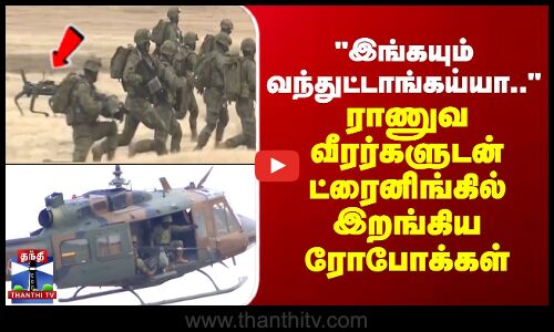 ராணுவ வீரர்களுடன் பயிற்சியில் ஈடுபடும் 4 கால் ரோபோக்கள்