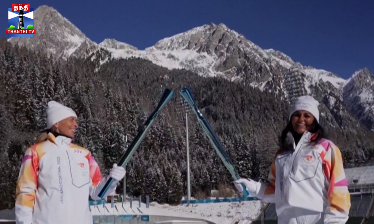 இத்தாலியின் மிலானோ கார்டினாவில் குளிர்கால ஒலிம்பிக் தொடங்க உள்ள நிலையில், ஒலிம்பிக் தீபம் ஏந்திச் செல்லும் நிகழ்வு பனியால் மூடப்பட்ட பயத்லான் (Biathlon) விளையாட்டு அரங்கத்தை வந்தடைந்தது.