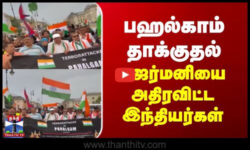ஜம்மு-காஷ்மீர் பஹல்காம் பயங்கரவாத தாக்குதல் சம்பவத்தை கண்டித்து ஜெர்மனி தலைநகர் பெர்லினில் ஆர்ப்பாட்டம் நடைபெற்றது. பஹல்காம் தாக்குதலில் உயிரிழந்தவர்களுக்கு அஞ்சலி செலுத்தியதைத் தொடர்ந்து, ஜெர்மனிவாழ் இந்தியர்கள் ஏராளமானோர் ஊர்வலமாகச் சென்று, தீவிரவாத தாக்குதலுக்கு எதிராக கண்டன முழக்கங்களை எழுப்பினர்.