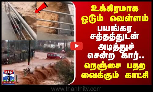 உக்கிரமாக ஓடும் வெள்ளம்.. பயங்கர சத்தத்துடன் அடித்துச் சென்ற கார்..பதற வைக்கும் காட்சி