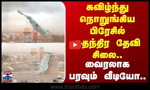 பிரேசிலில் வீசிய பலத்த காற்றில் சுதந்திர தேவி சிலை கீழே விழும் காட்சிகள் இணையத்தில் வைரலாக பரவி வருகிறது....