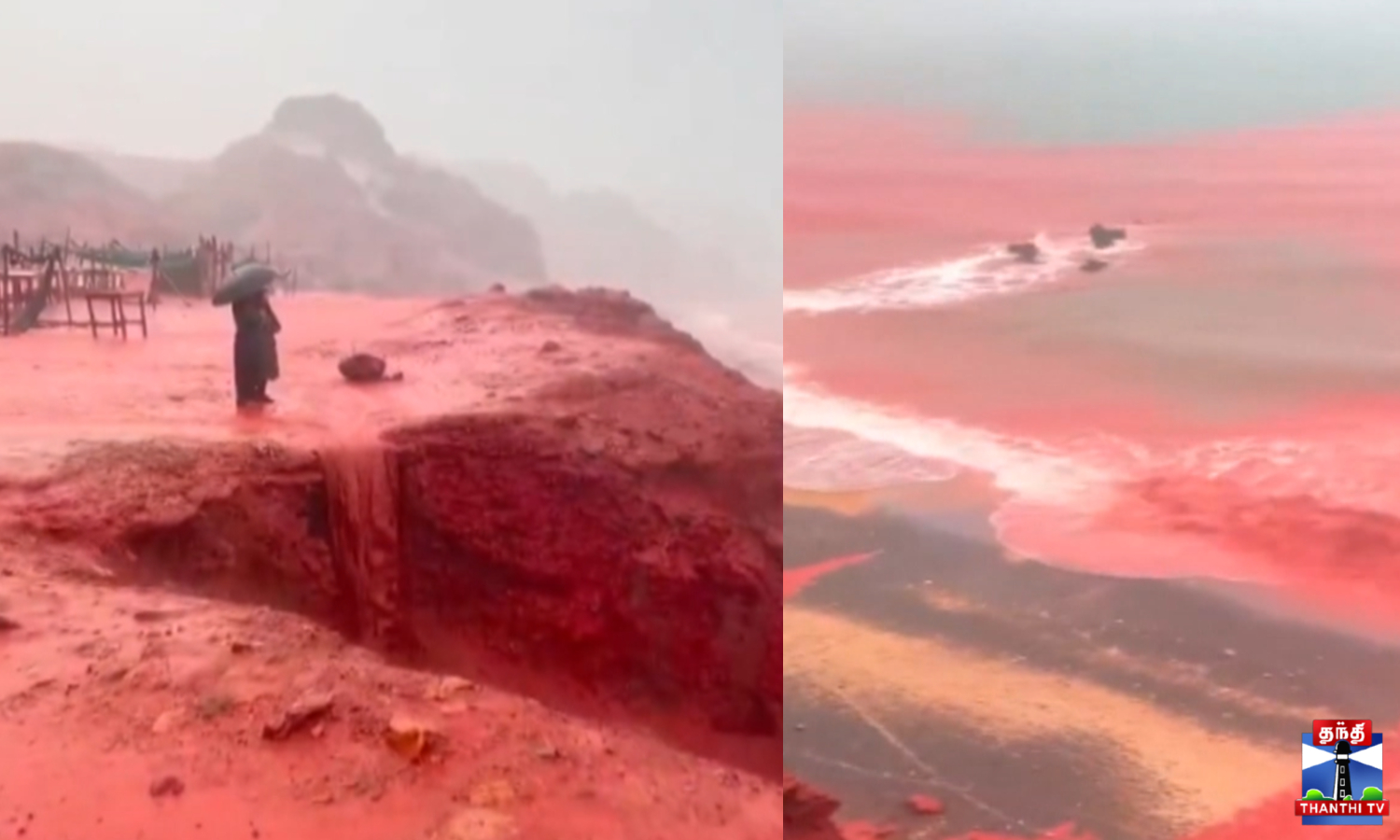 ஈரானுடைய ஹோர்முஸ் தீவுல கனமழை பெய்த நிலைல...அந்த பகுதியே ரத்தபூமி மாதிரி சிவப்பு நிறத்துல காட்சியளிக்குது...