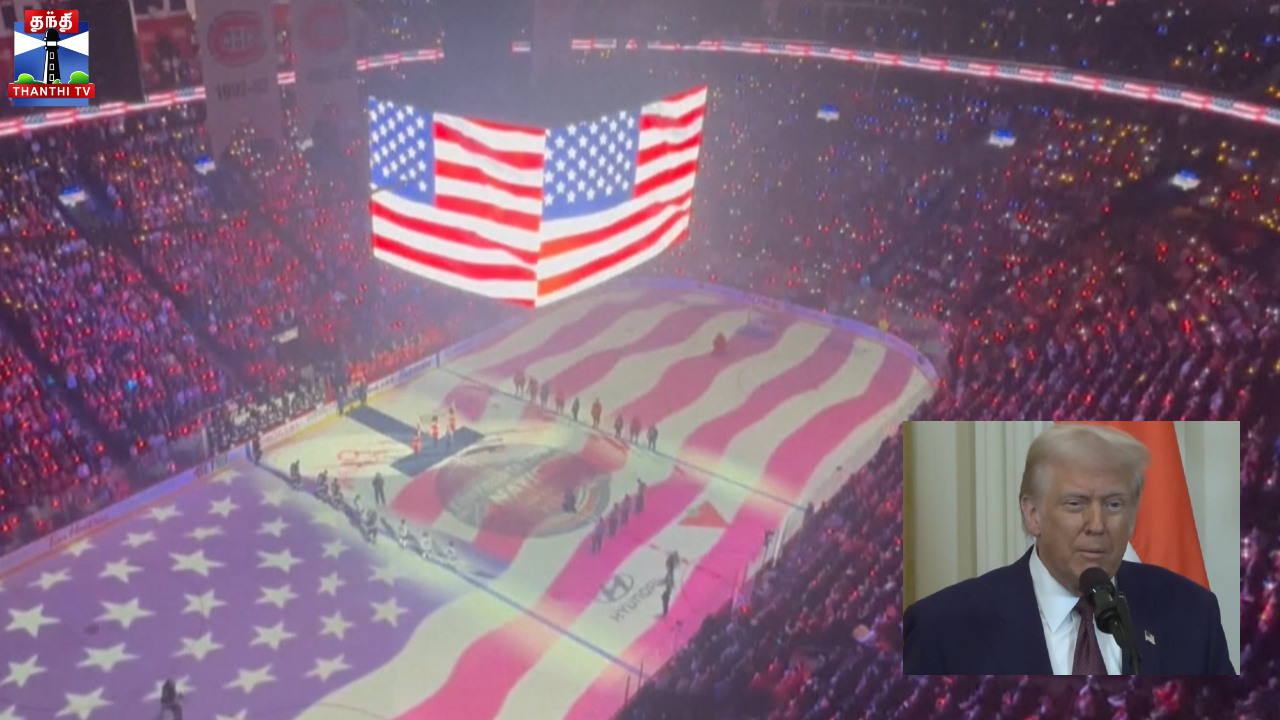 இந்த கோபத்தை வெளிப்படுத்தும் வகையில், கனடாவின் மாண்ட்ரீலில் ஐஸ் ஹாக்கி விளையாட்டு போட்டி துவங்கும் முன் உள்ளூர் ரசிகர்கள் அமெரிக்க தேசிய கீதம் ஒலிக்கும்போது எதிர்ப்பை வெளிப்படுத்தினர்...