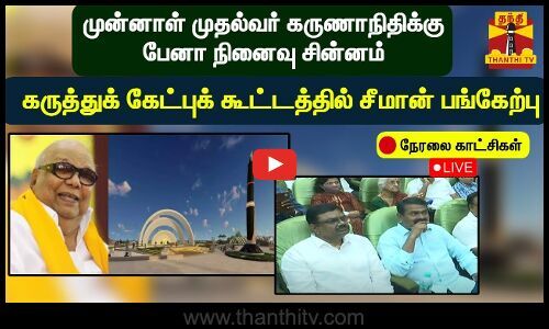 🔴LIVE : முன்னாள் முதல்வர் கருணாநிதிக்கு பேனா நினைவு சின்னம் - கருத்துக் கேட்புக் கூட்டத்தில் சீமான் பங்கேற்பு