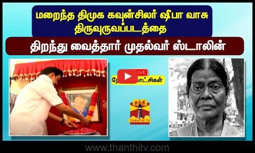 🔴LIVE : மறைந்த திமுக கவுன்சிலர் ஷீபா வாசு திருவுருவப்படத்தை திறந்து வைத்தார் முதல்வர் ஸ்டாலின்