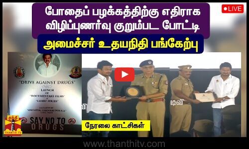 🔴LIVE : போதைப் பழக்கத்திற்கு எதிராக விழிப்புணர்வு குறும்பட போட்டி - அமைச்சர் உதயநிதி, கமிஷனர் சங்கர் ஜிவால் பங்கேற்பு