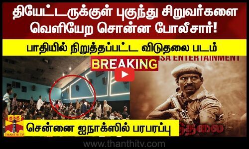 தியேட்டருக்குள் புகுந்து சிறுவர்களை வெளியேற சொன்ன போலீசார்! - பாதியில் நிறுத்தப்பட்ட விடுதலை படம் - சென்னை ஐநாக்ஸில் பரபரப்பு